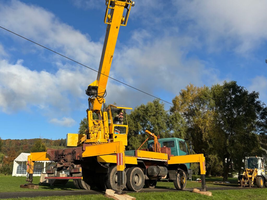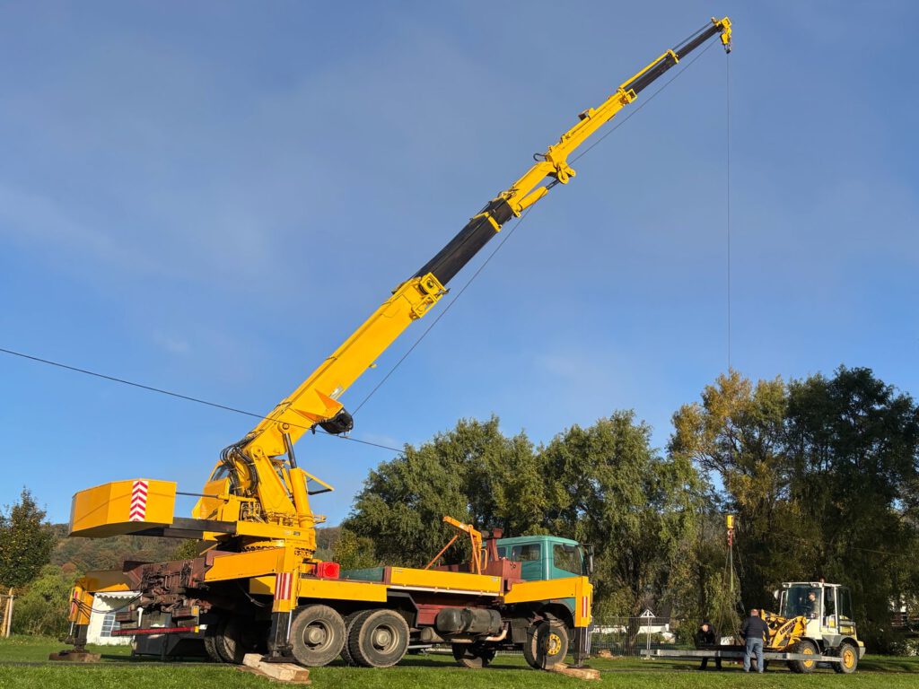 Auch Kranfahrer Milan war – wie beim Stegeinbau im Frühjahr – wieder mit seinem eindrucksvollen Gefährt vor Ort. Der Mercedes 2629, Baujahr 1991, mit einem V8-Motor mit 300 PS und 15,1 Litern Hubraum, ist längst mehr als nur ein Arbeitsgerät – er ist ein Stück erhaltener Technikgeschichte. Vollständig generalüberholt und liebevoll instand gesetzt, wurde dieses historische Fahrzeug buchstäblich vor dem Vergessen gerettet.